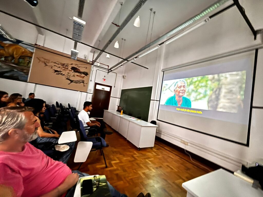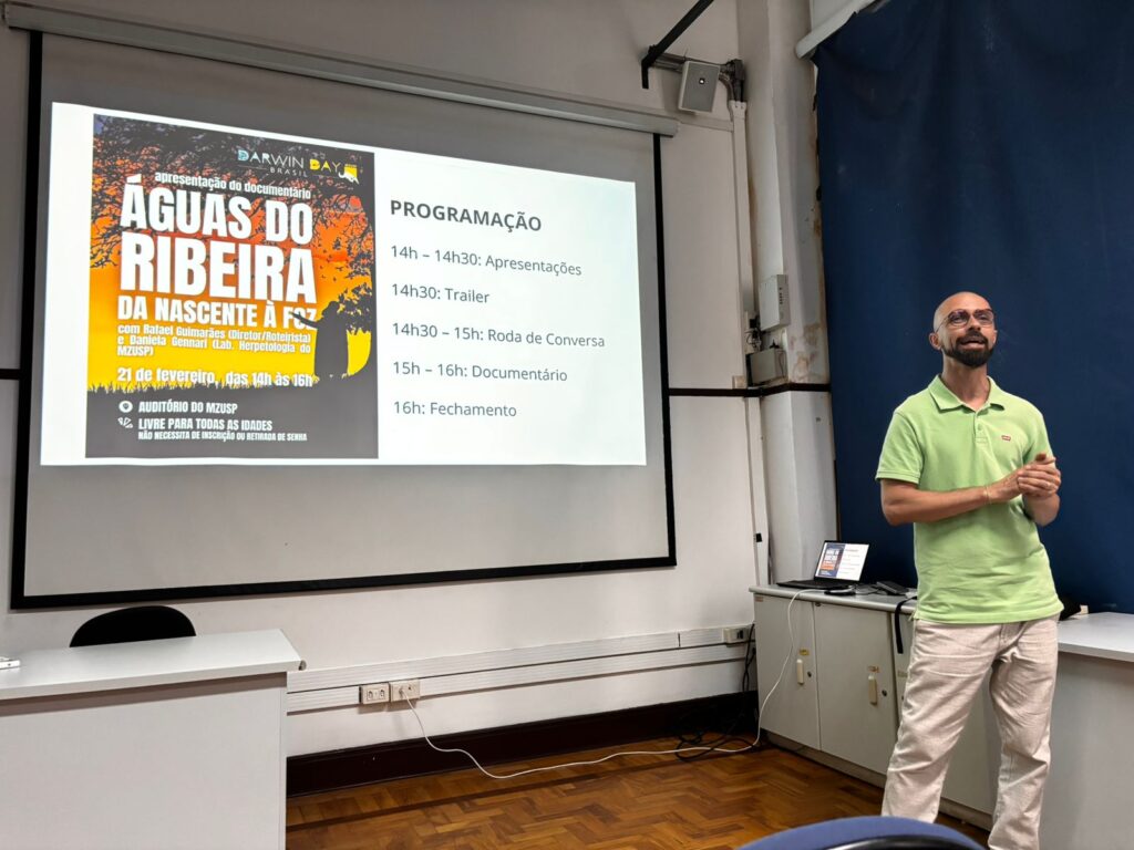 Durante a sessão, o público pôde acompanhar o documentário Águas do Ribeira – Da Nascente à Foz, uma produção audiovisual que percorre a bacia hidrográfica do Rio Ribeira de Iguape, revelando paisagens, histórias e modos de vida conectados às águas.